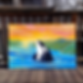 You can fin four raccoon inspired acrylic paintings along with a riverside landscape scene.